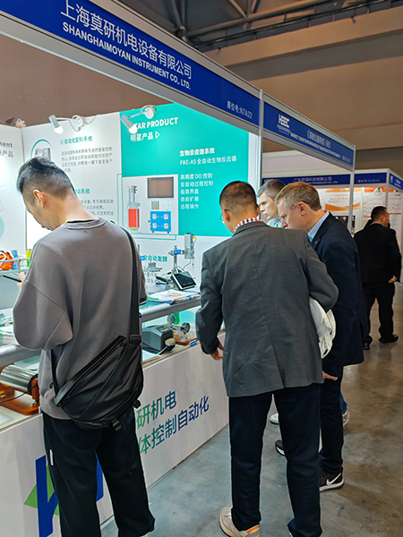 展會現場,莫研機電的展位號為 N7A22,精心陳列了滴定儀、生物發生器、蠕動泵、注射泵等多款先進儀器,以及靜電紡絲系統、切向流系統、稱重分裝系統等系統應用。其中,自動化配料系統與生物反應器系統堪稱明星展品。自動化配料系統以其先進智能控制核心驚艷全場,能迅速獲取產品配方信息,并一鍵下發至各分配器。FKE - A5 全自動生物反應器作為生物反應器系統代表,高精度 DO 控制與全自動過程控制能力,為高校實驗及科研工作筑牢堅實技術支撐,其簡潔界面與自由擴展性能,深度契合科研個性化需求,有力推動實驗進程。