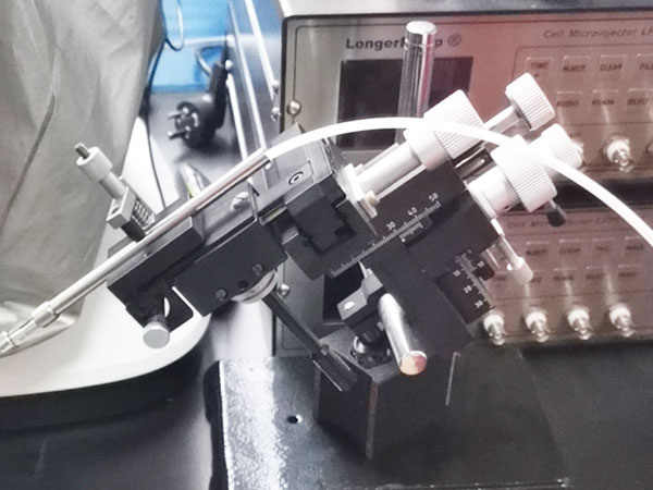 主要在生物實驗室使用,實現向細胞內注射皮升級液體(DNA,熒光染料等物質的溶液)
