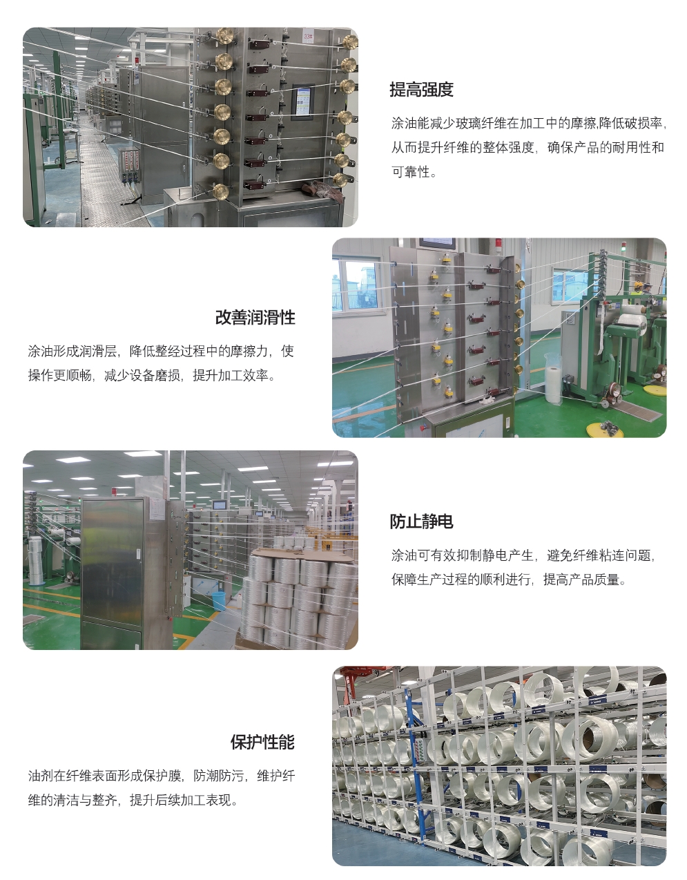 涂油柜是玻璃纖維生產線中的一種設備,主要用于對紗線進行涂油處理。涂油柜通常由涂油槽、輸送系統、涂油輥和控制系統等組成,其作用是在紗線表面形成一層薄膜,提高紗線的柔軟性和潤滑性,減少紗線之間的摩擦和斷裂。